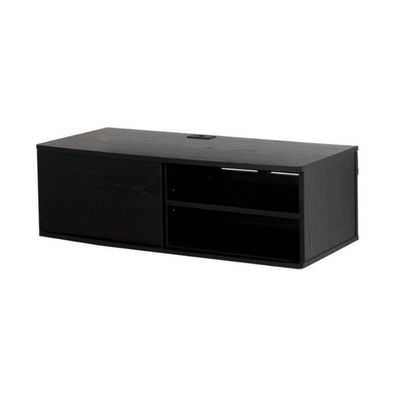 | South Shore - TV Stands - 9030674 - The light, airy style makes this a compact media console with maximum storage space. This contemporary wall mounted piece helps you free up space so you can say goodbye to the clutter that often happens in the TV area. The sliding door gives this handy console a somewhat original look. Can hold up to 110 lbs. Total; Sliding door means you can choose the configuration of your open and hidden storage spaces; 4 storage spaces separated by 2 adjustable shelves for more “customized” storage; Rounded corners for more safety; Space in back for passing cords through – simple, effective cord management ; Console hangs on wall, so floor is less cluttered; Includes metal hanging system for mounting TV stand firmly on wall; Safety is an integrated part of our values: this product meets or exceeds all North American safety standards; 5-year quality guarantee. Specifications:Requires complete assembly by 2 adults (tools not included); Clean with a soft dry cloth; Fastening device for hanging TV on wall and other accessories not included.