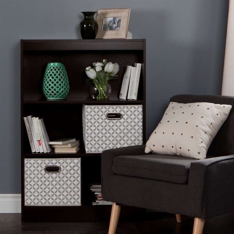 | South Shore Axess 3 Shelf Wood Bookcase in Chocolate with 2 Baskets |