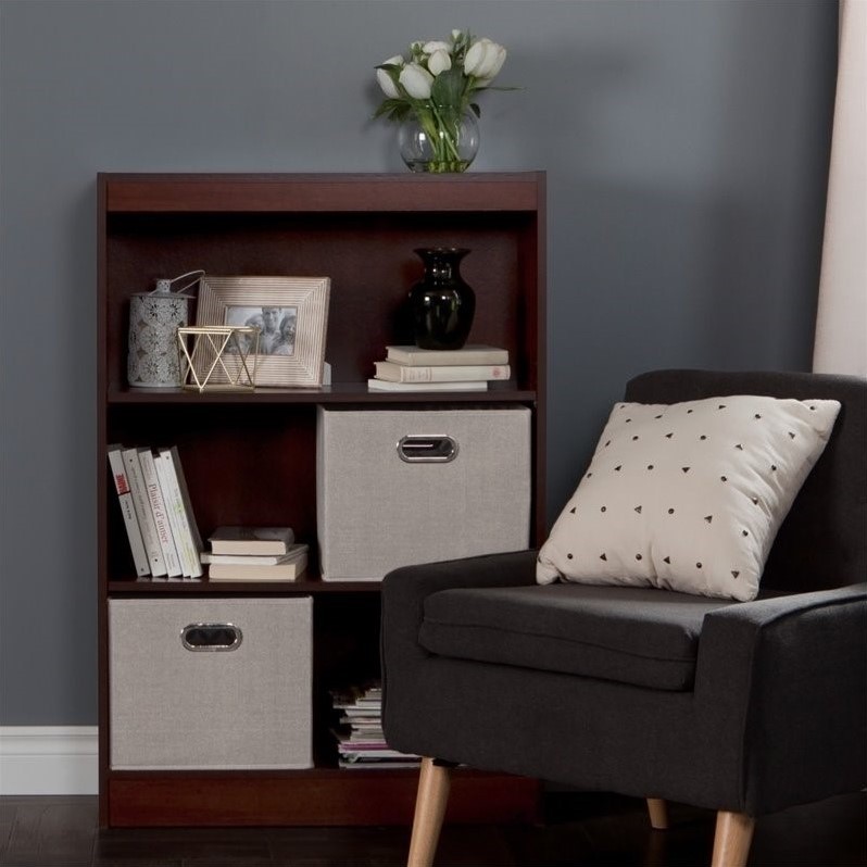 | South Shore Axess 3 Shelf Wood Bookcase in Royal Cherry with 2 Baskets |