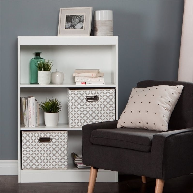 | South Shore Axess 3 Shelf Wood Bookcase in White with 2 Baskets |