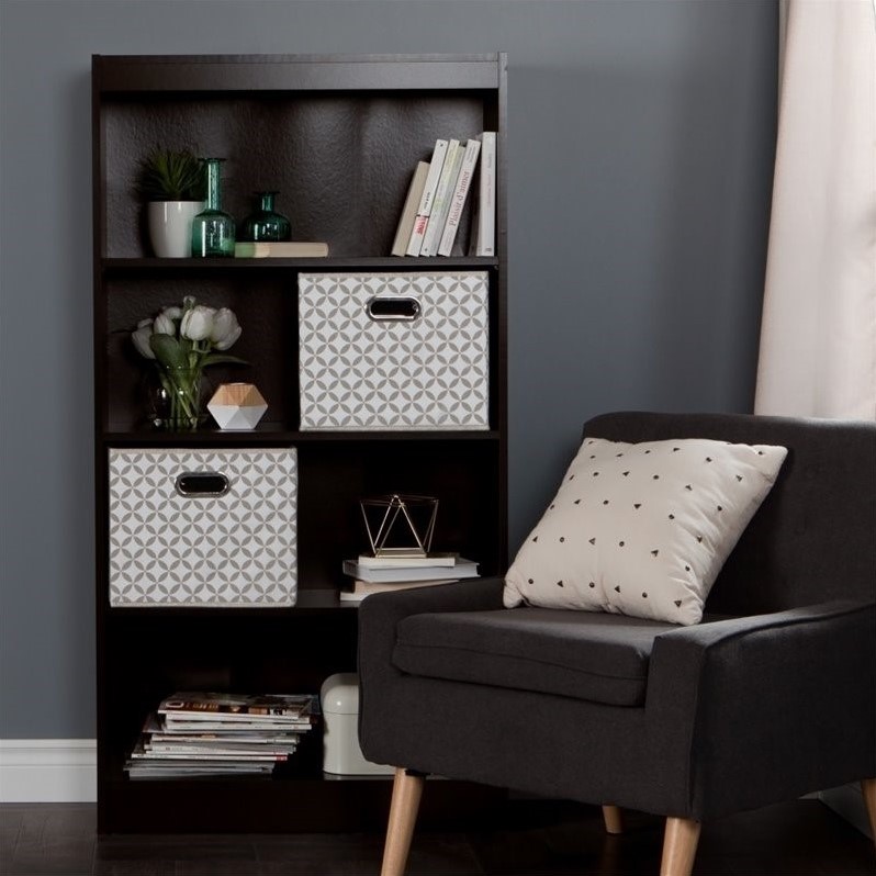 | South Shore - Bookcases - 8050148K - The Axess collection includes convenient items for maximizing storage in your home office or any other room. Combining functionality and style, the items in this collection feature plenty of handy storage compartments so that everything is tidy and within easy reach. Today’s the day you take back your living room! So roll up your sleeves and get down to it: this cute bookcase and set of baskets are perfect for keeping all those toys out of sight, so everything has a place… and the room will look so neat and tidy – the way it did before the kids arrived. Finish: Chocolate4 Shelves: 1 Fixed Shelf, 2 Adjustable ShelvesIncludes 2 patterned fabric storage baskets, Taupe and WhiteClean with a soft dry clothStorage baskets: Wipe clean with a damp cloth, 100% polypropylenePackaging tested and certified to reduce the risk of damage during shipmentFurniture made in Mexico with non-toxic laminated particleboard, baskets made in China with polypropyleneSpecifications:Overall Product Dimensions: 58"" H x 30.75"" W x 11.5"" DOverall Product Weight: 59 lbsBasket Dimensions: 12"" H x 11"" W x 14"" D5-year quality guarantee on furniture, 30-day customer satisfaction guarantee on baskets