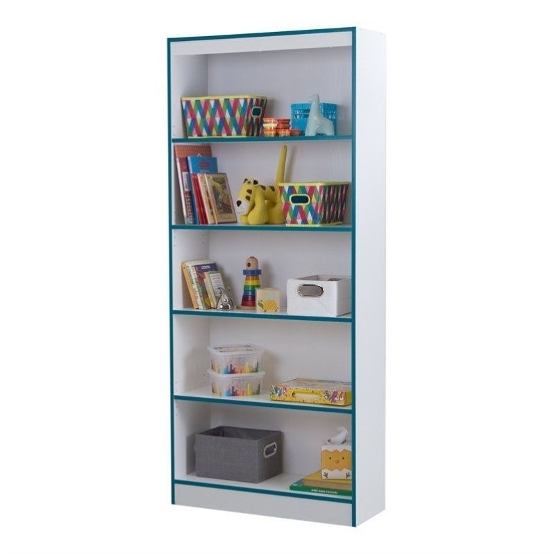 | South Shore Axess 5 Shelf Bookcase in Pure White and Turquoise |