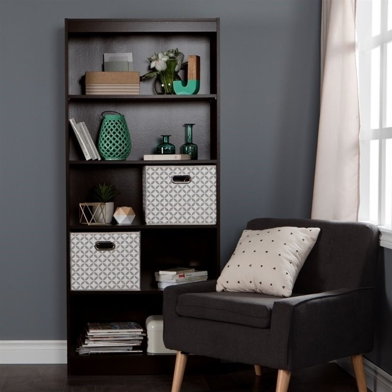 | South Shore Axess 5 Shelf Wood Bookcase in Chocolate with 2 Baskets |