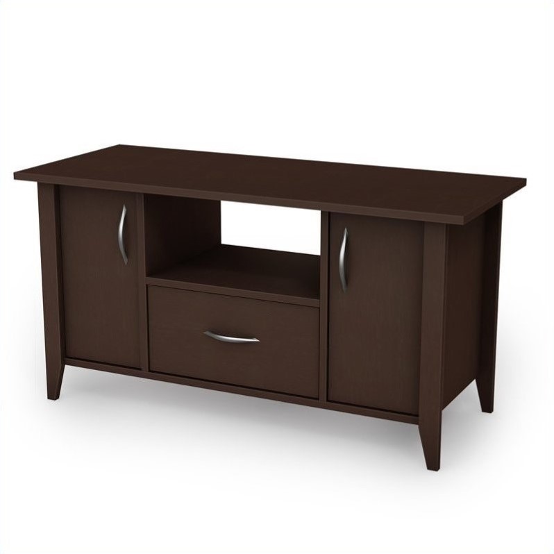 | South Shore - TV Stands - 4959661 - The elegant compact Axess TV Stand is perfect for living rooms or bedrooms with limited space. It features two compartments with doors, one practical drawer and an open storage compartment. Stylish and functional, the contemporary Axess TV Stand can match just about any decor. TV Stand made from laminated particle board ; Chocolate finish ; One practical drawer ; Two doors ; One easily accessible open storage spaces ; Open back to facilitate cable management ; Accommodates televisions of up to 50"" ; Metal handle with a brushed zinc finish ; Cut-out legs ; Contemporary style ; Made of EPP certified panels (Environmentally Preferred Product) ; Ready to assemble ; 5 year limited warranty ; Made in Mexico . Specifications: Overall Dimensions: 25"" H x 47.25"" W x 20"" D; The dimensions of the open storage space are as follows:Width: 18-7/8 inches; Front to back: 15-3/4 inches; Height: 8-7/8 inches. Weight: 123 lbs ; Shipping Carton Dimensions: 6"" H x 22"" W x 49.5"" D .