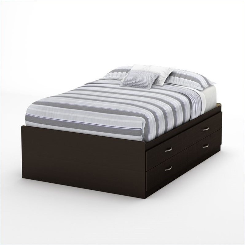 | South Shore - Kids Beds - 3159209 - This Back Bay full storage bed in Chocolate finish provides a distinctly modern edge. Its 4 spacious and extra large drawers offers plenty of storage space for clothes, bedding or toys. Metal handles in a Brushed Nickel finish embellish the drawer fronts. A real space saver since it is like having a 4-drawer dresser under a bed. It is reversible, so the drawers can be accessed from either side.Chocolate finish4 spacious and extra large drawersBrushed nickel metal handlesDrawers are reversible, so you can have the drawers on either side.The interior drawer dimensions are 35-1/4-inch wide by 19-1/4-inch front to back by 7-1/2-inch high and are equiped with full extension metal slidesWill fit with most full size mattressWeight capacity of 500 poundsNo box spring requiredManufactured from certified Environmentally Preferred laminated particle panels Complete assembly required by 2 adults Tools are not included 5-year limited warranty Made in CanadaSpecifications:Overall Product Dimensions: 22"" H x 55.5"" W x 76.5"" DWeight: 208 lbs