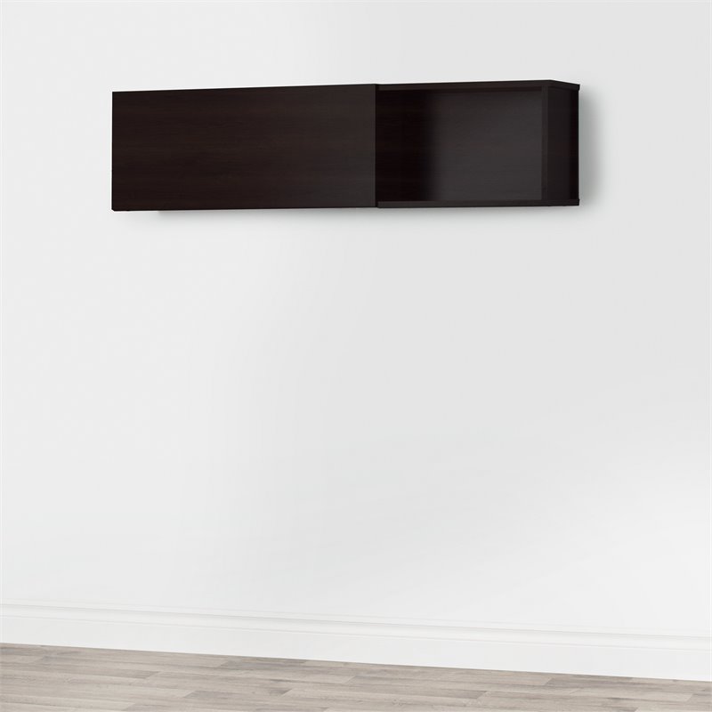 | South Shore - Wall Display Shelves - 10376 - With its rich finish and metal accents, the City Life collection is ideal for matching with any other furniture, and it blends well with a wide variety of interiors. This collection’s defining features are its clean lines and softened corners that add up to a simple design. In addition, each item’s size and shape allow it to fit neatly in your studio, apartment, loft or home office. Our goal when designing this sturdy wall storages unit was to combine style with simplicity. It features a unique panel, held up by air supports, that gives you easy access to whatever’s inside. Hang it on your living room wall for inspiration in creating a sleek, modern ambiance.Finish: ChocolateMaterial: Non-toxic Laminated particleboardPerfect for audio/video materialCable holes : back, under and upper panelsBehind the door : 1 storage spaceDoor supported by air pistonsPackaging tested and certified to reduce the risk of damage during shipmentAccessories not included. Clean with a soft dry clothRequires complete assembly by 2 adults (tools not included)5-year quality guarantee. Any questions? Contact the manufacturer, available 7/7 by phone, email or chat. Specifications:Overall Product Dimensions: 13'' H x 48'' W x 11.75'' DProduct Weight: 41 lbs