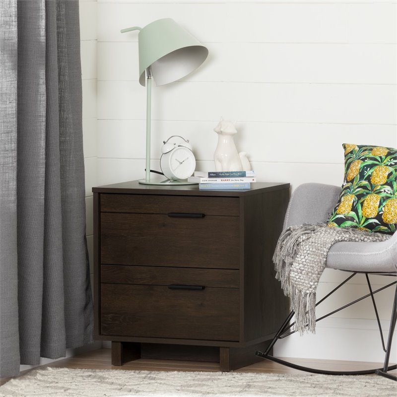 | South Shore Fynn 2 Drawer Nightstand in Brown Oak |