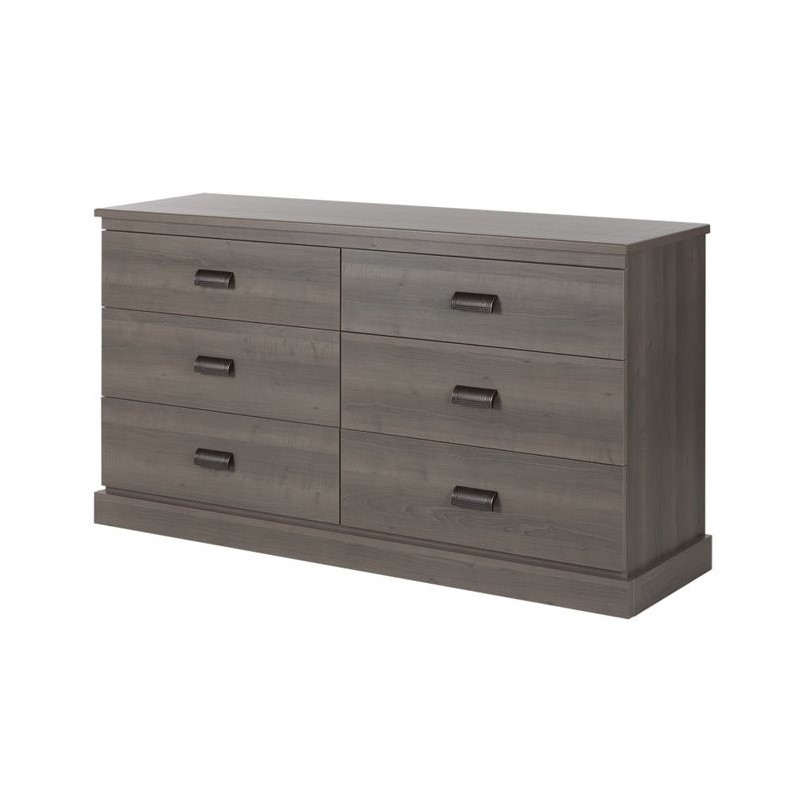 | South Shore Gloria 6 Drawer Double Dresser in Gray Maple |