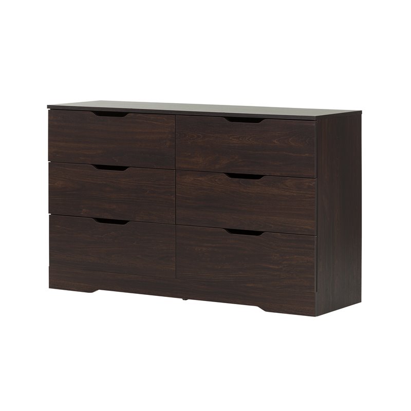 | South Shore - Dressers - 10400 - The contemporary-style Holland collection’s main feature is its straight and clean lines. It provides plenty of convenient open and closed storage spaces that combine ease of access and discretion. True to the spirit of the style, this collection’s drawers feature cut handles so they can display a smooth, unbroken front. This dresser was designed with clean, straight lines and features six spacious drawers mounted on metal slides for smooth gliding. The drawers are fitted with modern cut outs instead of handles, making it an easy match to all decor types.Finish: Red-Brown OakMaterial: Non-toxic Laminated particleboardCut-out handles at the top of the drawersFeatures 6 practical drawersMetal drawer slidesPackaging tested and certified to reduce the risk of damage during shipmentAccessories not included. Clean with a soft dry clothShips in a heavy box, make sure to have a friend with youRequires complete assembly by 2 adults (tools not included)5-year quality guarantee. Any questions? Contact the manufacturer, available 7/7 by phone, email or chat. Specifications:Overall Product Dimensions: 32.5'' H x 53.5'' W x 16.5'' DProduct Weight: 119 lbs