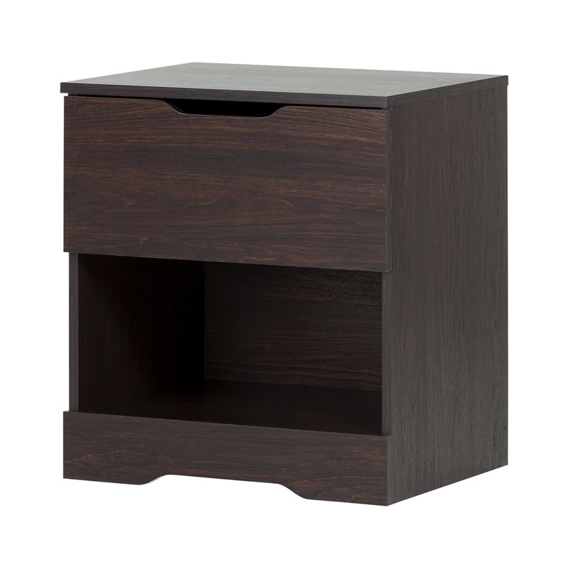 | South Shore - Nightstands - 10402 - The contemporary-style Holland collection’s main feature is its straight and clean lines. It provides plenty of convenient open and closed storage spaces that combine ease of access and discretion. True to the spirit of the style, this collection’s drawers feature cut handles so they can display a smooth, unbroken front. This nightstand’s clean, straight lines give it a contemporary look. It features a drawer and an easily accessible open storage space to keep bedside items within reach. The drawer is mounted on metal slides for smooth gliding and fitted with a modern cut out instead of a handle, making it an easy match to all decor types.Finish: Red-Brown OakMaterial: Non-toxic Laminated particleboardCut-out handle at the top of the drawerFeatures 1 open easy-access storage spaceFeatures 1 practical drawerMetal drawer slidesPackaging tested and certified to reduce the risk of damage during shipmentAccessories not included. Clean with a soft dry clothRequires complete assembly by 2 adults (tools not included)5-year quality guarantee. Any questions? Contact the manufacturer, available 7/7 by phone, email or chat. Specifications:Overall Product Dimensions: 23.23'' H x 216'' W x 16.48'' DProduct Weight: 32 lbs