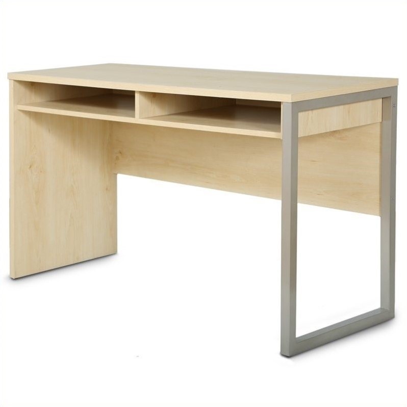 | South Shore - Computer Desks - 7324070 - This elegant desk, part of the Interface collection, will please the biggest fans of contemporary style furniture. Its beautiful metal leg support and light-colored finish give it a modern look that’s one of the most sought after – exactly what you need to enhance your room. And its 2 open storage spaces, which can hold a tablet, a laptop, and books, make this the ideal piece for the home office, the living room, or even a bedroom. This handy desk gives you a large work surface that’s perfect for your laptop, books and some decorative touches.Metal leg support with satin nickel finishLarge open space in back for passing electrical cords through – for simple, efficient cable managementAll surfaces are laminated, so you can also place this worktable in the centre of a room so every side is visibleFile cabinet and accessories not includedRequires complete assembly by 2 adults (tools not included)Style: ContemporaryFinish: Natural MapleSpecifications:Overall Product Dimension: 29.5"" H x 47.4"" W x 19.41"" DWeight: 65 lbs