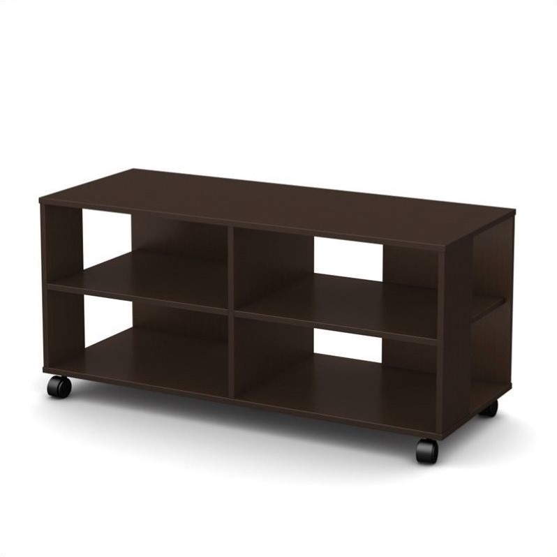 | South Shore - TV Stands - 4919606 - From the Jambory collection, here’s a versatile, flexible storage unit on casters that works as a combination TV stand/storage piece. The four open spaces make it ideal for putting away electronics as well as everyday items. Because of the casters, this uMultiple uses: TV stand and shelving unitCasters with built-in brakes are included, so moving the unit around is simple and practicalPerfect for a television or any other display item Accommodates LCD and plasma televisions up to 48""Storage unit able to support a television of up to 80 lbsFeatures 4 open storage spaces separated by fixed shelves, perfect for electronic devices and everyday itemsCut out hole in the back panel which allows for easy wire management The back surface is not laminatedComplete assembly required by two adults (tools not provided)ISTA 3A certified packagingManufactured from eco-friendly, EPP-compliant laminated particle boardSpecifications:Overall Product Dimensions: 21""H x 46.14""W x 18.39""D5 Years WarrantyMade in Mexico