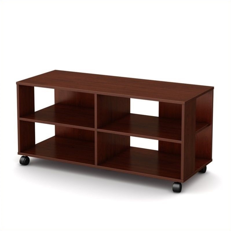 | South Shore - TV Stands - 4946606 - From the Jambory collection, here’s a versatile, flexible storage unit on casters that works as a combination TV stand/storage piece. The four open spaces make it ideal for putting away electronics as well as everyday items. Because of the casters, this uMultiple uses: TV stand and shelving unitCasters with built-in brakes are included, so moving the unit around is simple and practicalPerfect for a television or any other display item Accommodates LCD and plasma televisions up to 48""Storage unit able to support a television of up to 80 lbsFeatures 4 open storage spaces separated by fixed shelves, perfect for electronic devices and everyday itemsCut out hole in the back panel which allows for easy wire management The back surface is not laminatedComplete assembly required by two adults (tools not provided)ISTA 3A certified packagingManufactured from eco-friendly, EPP-compliant laminated particle boardSpecifications:Overall Product Dimensions: 21""H x 46.14""W x 18.39""D5 Years WarrantyMade in Mexico