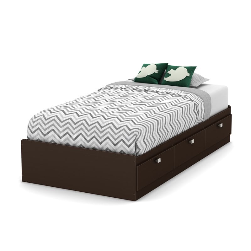 | South Shore Karma Twin Mates Bed with 3 Drawers in Chocolate |