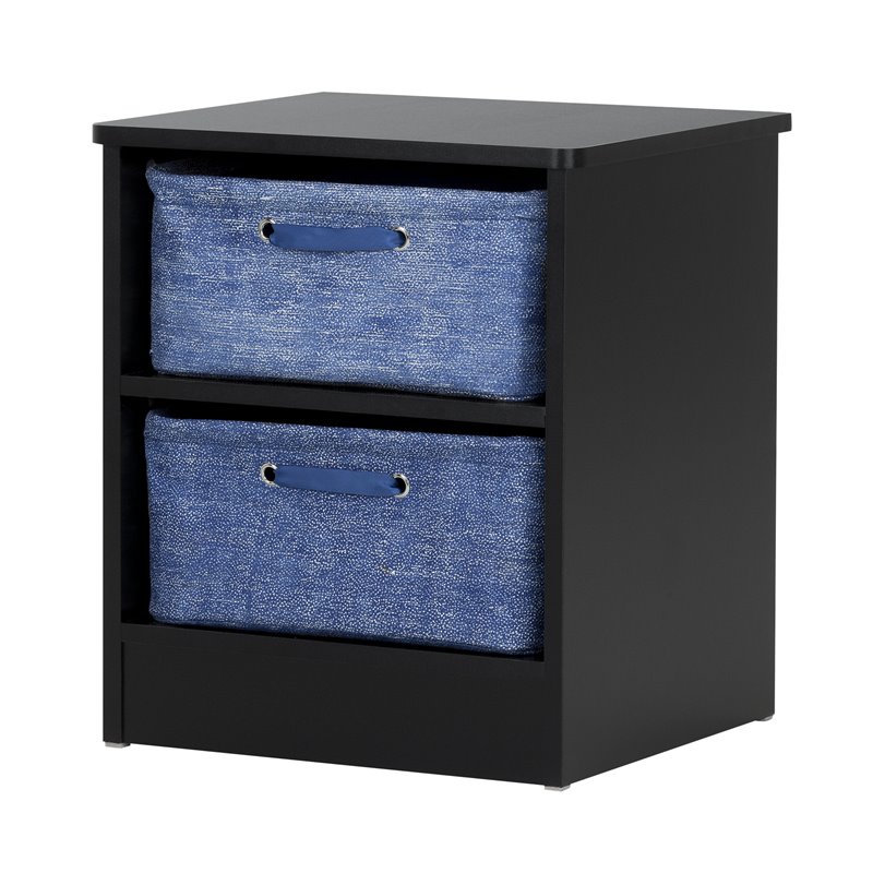 | South Shore - Kids Night Stands - 100133 - Help your child take that first step toward an organized life with the Libra collection. This collection has plenty of open and closed storage spaces where children can store their precious treasure or keep essential items handy. With its sleek, straight lines highlighted by the slightly rounded curve, this collection’s contemporary character gives it an enduring style that will keep its relevance even beyond childhood! Is your kid's room small? No worries: This contemporary nightstand features simple lines that blend right into any decor and was designed Is your kid's room small? No worries: This contemporary night stand features simple lines that blend right into any decor and was designed just for tighter spaces! The basket, with its chambray design, gives you a hidden place for storage. It's a great way to create a simple decor that's brought to life through the use of bright colors.Finish: Pure BlackMaterial: Non-toxic Laminated particleboardIncludes 1 nightstand and 2 baskets with chambray pattern2 open easy-access storage spacesBaskets : Made with Polypropylene and Woven Paper, clean with a damp clothPackaging tested and certified to reduce the risk of damage during shipmentBaskets included, other accessories not included. Clean with a soft dry clothMeets or exceeds all North American safety standardsRequires complete assembly by 2 adults (tools not included). Specifications:Overall Product Dimensions: 20'' H x 17.75'' W x 15.75'' DProduct Weight: 30 lbs