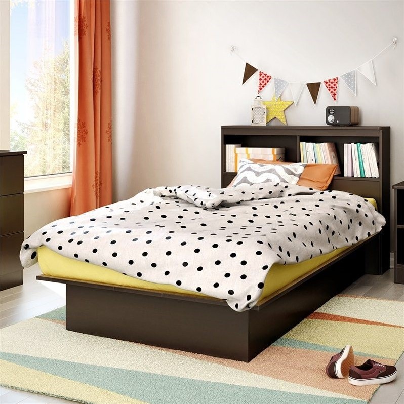 | South Shore Libra Twin Bookcase Platform Bed in Chocolate |