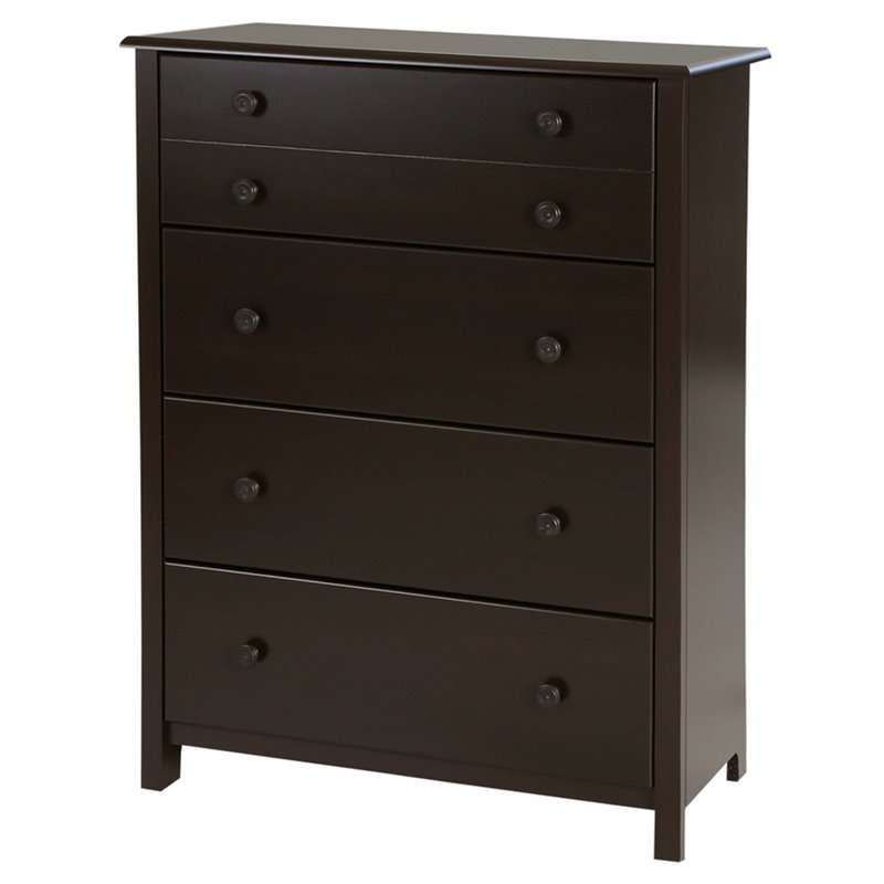 | South Shore - Baby Dressers - 3759034 - You’ll be totally charmed by this transitional style chest from the Little Smileys collection, with its large closed storage spaces and its brilliant finish. The four large drawers give you versatile storage spaces with lots of room. And the groove on the top drawer, along with the wooden knobs, add a touch of style to your nursery.Espresso finish wooden knobsDecorative groove on top drawer and recessed sides for a transitional styleMetal drawer slides for smooth glidingSpecifications:Accessories not includedClean with a soft dry clothSafety is an integrated part of our values: this product meets or exceeds all North American safety standardsRequires complete assembly by 2 adults (tools not included)5-year quality guarantee