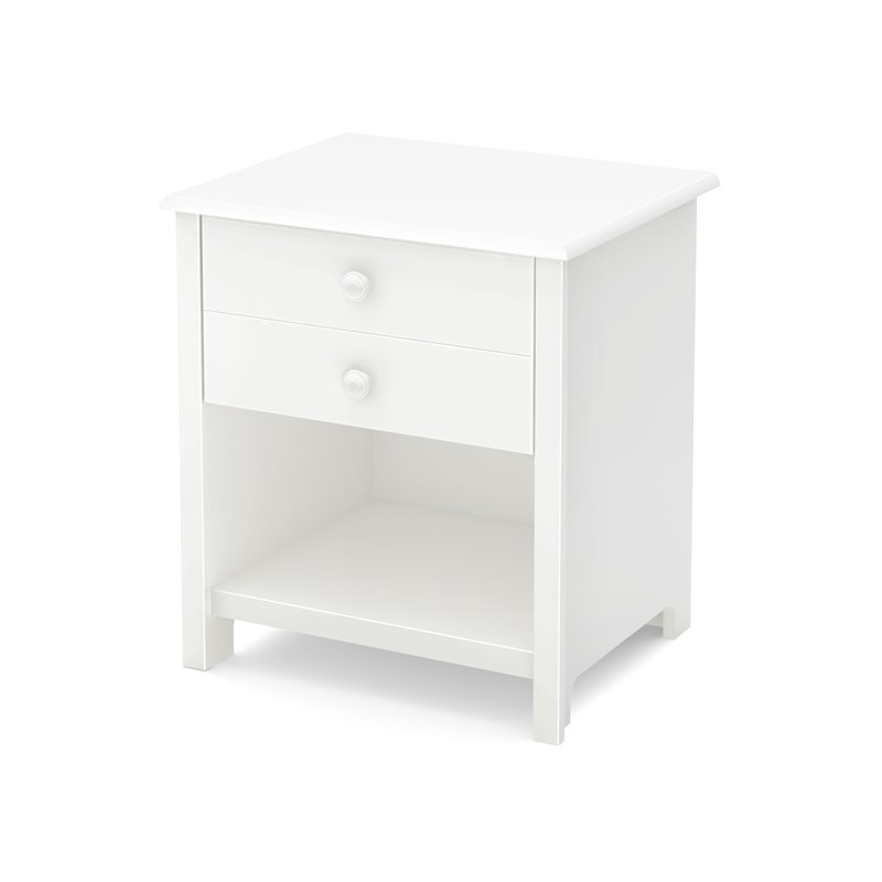 | South Shore - Kids Night Stands - 10201 - Our Transitional-style Little Smileys collection, which features multiple storage spaces, both open and closed, is oh-so-appealing! Its wealth of detail – including recessed sides, grooved upper drawers and wooden knobs – will lend a look of charm to your child’s room. This cute nightstand will add a heartwarming touch to your kid’s room. It chases away the monsters under the bed, and also gives you some handy storage options that are easy to access. The unisex design means you can keep it in the family for years to come.Finish: Pure WhiteMaterial: Non-toxic Laminated particleboardWooden knobsDecorative groove on top drawer, recessed sides for a transitional styleMetal drawer slides for a smooth glideOpen storage space has a hole for passing cords throughCombine it with the bed from the Little Smileys collection (10203).Packaging tested and certified to reduce the risk of damage during shipmentAccessories not included. Clean with a soft dry clothRequires complete assembly by 2 adults (tools not included)5-year quality guarantee. Any questions? Contact the manufacturer, available 7/7 by phone, email or chat. Specifications:Overall Product Dimensions: 23.25'' H x 21.1'' W x 17'' DProduct Weight: 27 lbs