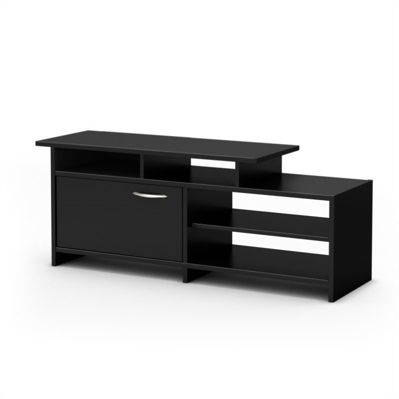 | South Shore - TV Stands - 3107661C - This asymetrical TV stand will bring a trendy contemporary look to your living room. It offers both practical easy-access open storage and a closed storage compartment as well. Its neutral and trendy finish will easily blend right in with any decor. Elegant metal handles in a Brushed Nickel finish; Straight lines and striking asymmetry inspired by the trendiest contemporary style; Accommodate LCD et plasma televisions up to 42""; Mix of open and closed storage compartments ideal for a tidy living room; 2 storage open spaces at the top; Features 2 storage compartments separated by 1 adjustable shelf behind the door; Open space in the back for easy and neat wire management; The back surface is not laminated; Complete assembly required by two adults (tools not provided); Manufactured from eco-friendly, EPP-compliant laminated particle board carrying the Forest Stewardship Council (FSC) certification; Made of non-toxic materials and components. Specifications:Overall product dimensions: 52""W x 16""D x 20""H; Weight capacity of 150 Pounds.