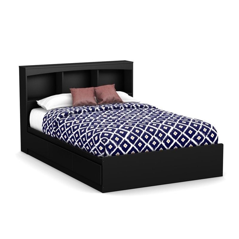 | South Shore - Beds - 3107079211SET - South Shore Full Storage Bed in Pure BlackThis practical storage bed is a great value for your money, as it does not require any box spring. With its three practical drawers providing plenty of storage room, it is definitely a great space-saving solution. It features handle-free profiled drawer front for easy opening and style matching. It provides a perfect fit with South Shore's Pure Black finished furniture and it is not designed to be attached to a headboard. It is reversible so the drawers can be placed on either side. The top surface is not finished and it has a weight capacity is 500 pounds. Full size storage bed; Three practical storage drawers; Bed is reversible as it does not attach to a headboard; Drawers with no handles; cut-out at the bottom of the drawer fronts for easy opening; Box spring or foundation is not required; Equipped with polymer glides that includes dampers and catches for enhanced safety; Pure Black finish; Contemporary style; The top surface is not laminated; To clean, use a soft dry cloth; Manufactured from laminated particle board (eco-friendly EPP compliant carrying the Forest Stewardship Council (FSC) certification); Made of non-toxic materials and components; Complete assembly required by two adults (tools not provided); In order to reduce the risks of damage to a minimum during shipment of your furniture, our packaging is ISTA 3A certified; 5-year limited warranty; Made in Canada . Specifications: Overall Dimensions: 14"" H x 56"" W x 76.25"" D; Weight: 144 lbs; Drawer interior dimensions: 22.5"" W x 18.5"" D; Weight Capacity: 500 lbs . South Shore Maddox Full Bookcase Headboard in Pure BlackThis full bookcase headboard will bring a classic, structured harmony to your bedroom. You’ll be happy to have 3 open spaces for more storage. Great value in a piece you can use to arrange your space based on your needs! 3 easy-access open storage spaces, perfect for an alarm clock or a box of tissues