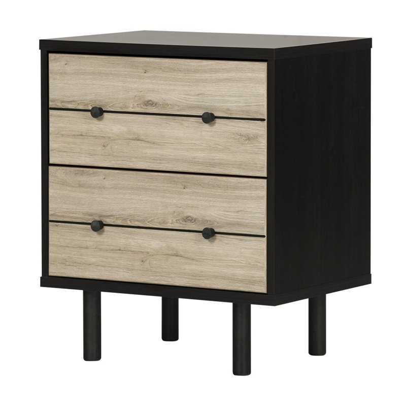 | South Shore Morice 2 Drawer Nightstand in Ebony and Rustic Oak |