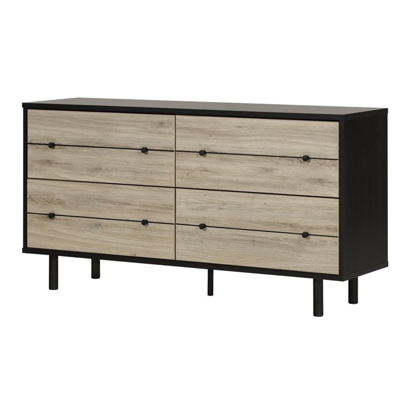 | South Shore - Dressers - 10501 - A great piece that’ll give you the Mid-Century modern style you’re looking for! Its rich finish and black accents give it an industrial look that’ll add some punch to your room. Its large and deep drawers are ideal for all your storage needs.Combine it with the other pieces in this collection for a more imposing presence… or make it a part of your bedroom suite, for a timeless style. Finish: Ebony and Rustic Oak; Material: Laminated particleboard; Mid-Century modern style; 4 Large and deep drawers ideal to store sweaters; Two tone piece with black metal accent; Rounded corners accentuate the 70s style; Rounded Wooden knobs. Rounded Wooden legs ; Flexible: Can also be used as a buffet or sideboard. Metal drawer slides; Packaging tested and certified to reduce the risk of damage during shipment; Made in North America with non-toxic laminated particleboard; Accessories not included. Clean with a soft dry cloth; Ships in a heavy box, make sure to have a friend with you; Requires complete assembly by 2 adults (tools not included). Specifications:Overall Product Dimensions: 30.75'' H x 59.25'' W x 16.5'' D; Product Weight: 128.0 lbs; 5-year quality guarantee. Any questions? Contact the manufacturer, available 7/7 by phone, email or chat.