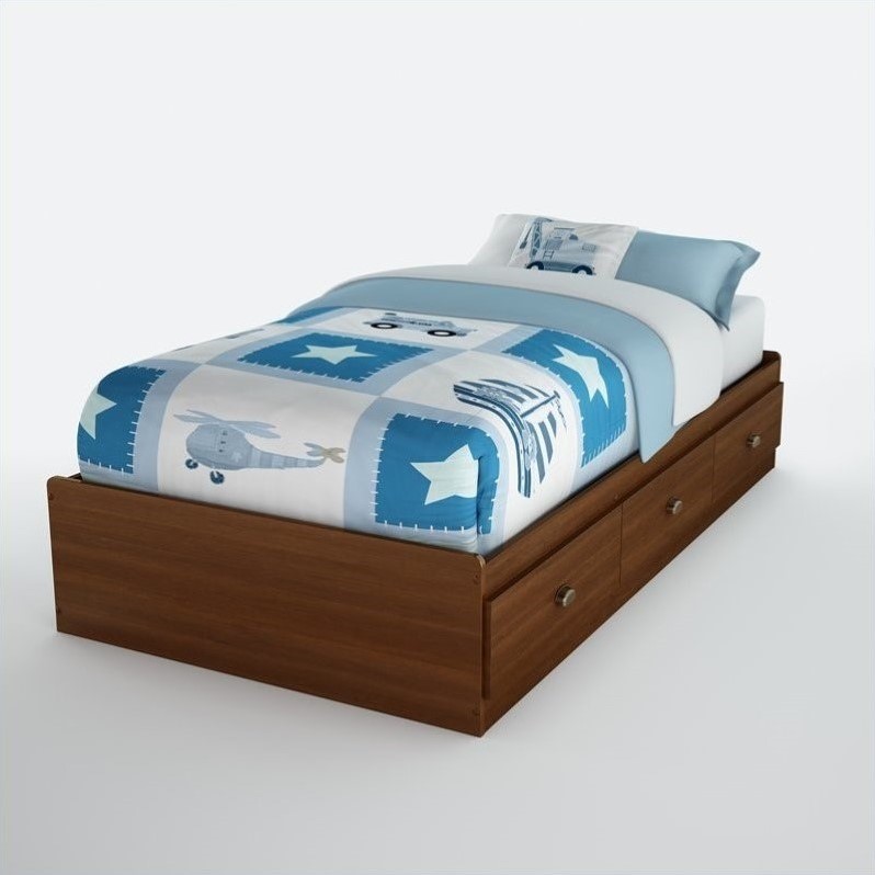 | South Shore - Beds - 3356212 - The Nathan Mates Bed is crafted from engineered wood products in a Sumptuous Cherry finish. This twin size mates bed features three storage drawers to store all your kid’s toys, clothing and other valuables. With an elegant design and underbed storage spaces, the Nathan Mates Bed is the ideal central fixture for your kid’s bedroom. The Nathan Collection by South Shore Furniture offers traditional styling with a touch of contemporary design elements. This collection of children's furniture features metal handles, a decorative kickplate and drawers for toys, clothing and other items. With a rich Sumptuous Cherry finish, the South Shore Furniture Nathan Collection is sure to garner praise from all who see it. Mates Bed made of engineered wood products ; Sumptuous Cherry finish ; Twin size ; Includes bed box and three storage drawers ; Metal handles ; Traditional style ; Ready to assemble ; EPP (Environmentally Preferred Product) certified product uses panels made entirely of recycled fibers ; Packaging is ISTA 3A-certified to ensure its integrity and your total satisfaction ; Shrink-wrapped packaging with reinforced corners to reduce the risk of shipping damage ; Manufacturer 5-year limited warranty ; Made in Canada . Specifications: Overall Product Dimensions: 13.75""H x 76.25""W x 41""D ; Weight: 119 lbs ; Shipping Carton Dimensions: 4"" H x 20"" W x 82.75"" D . Recommended Care: Never let liquids or damp cloths sit on this furniture ; Do not put plastic or rubber rings under appliances ; Use cloth of felt protectors ; To avoid dulling of the finish, do not place furniture in direct sunlight ; Never use ammonia-based cleaning products, as they will damage the finish ; To clean, use a soft or slightly damp cloth, then wipe with a clean, dry cloth .