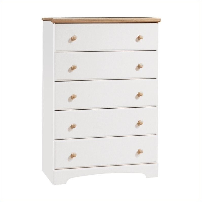 | South Shore - Chests - 3263035 - The clean, linear lines and spare decorative detail that define traditional Shaker style are reflected in the Newbury Five Drawer Chest. It features five spacious drawers with knob-style wooden drawer pulls, all in a nice white finish, and a warm natural maple top. Chest features particleboard construction with a laminate finish ; Chest has a pure white finish ; Constructed of CARB compliant materials; Chest features five spacious drawers ; Perfect for boys and girls . Specifications: Overall dimensions: 31""W x 45""H x 16""D; 85 lbs..