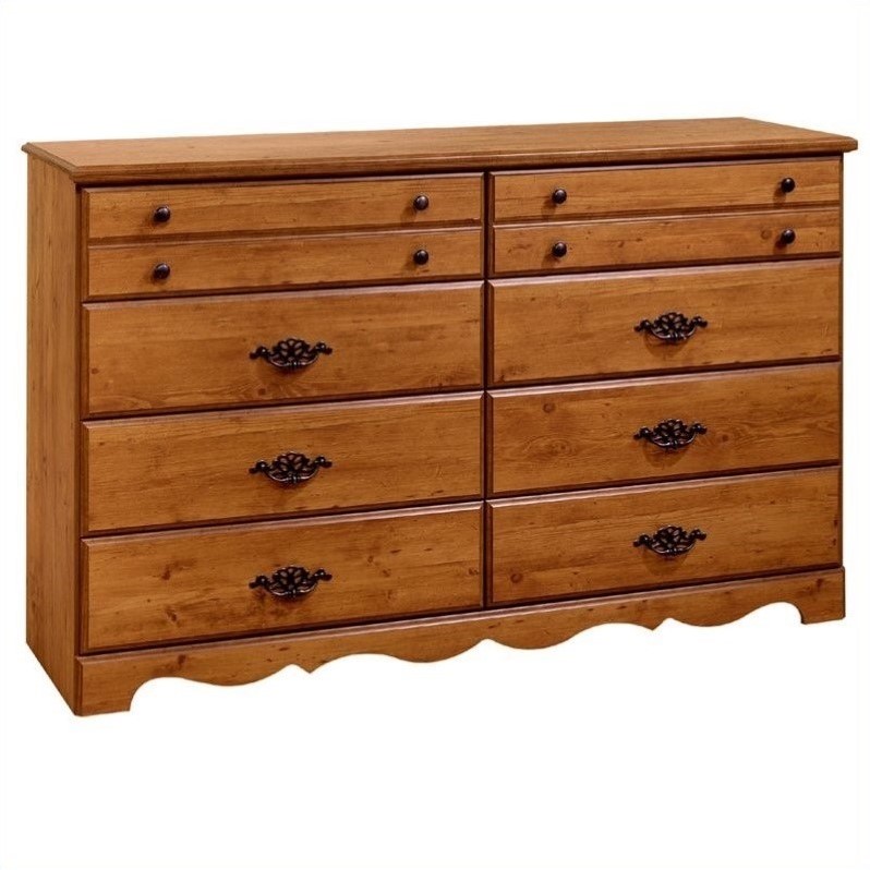 | South Shore - Dressers - 3232011PKG - South Shore Prairie Dresser MirrorThe Prairie Collection Dresser Mirror features scalloped crown molding, which is repeated in the frame, giving it a double-arched appearance. Country chic in style, it is sure to be a welcome addition in any room. Mirror frame features solid particleboard wood construction ; Mirror has a country pine finish ; Constructed of CARB compliant materials; Arch dresser mirror ; Manufacturer's 5-year limited warranty . Specifications: Overall dimensions: 42"" H x 41"" W x 2"" D. South Shore Prairie Double Dresser in Country PineThis country style double dresser is crafted with care and attention, featuring a scalloped apron, beautifully detailed metal exterior hardware, and a warm Country Pine finish. The spacious drawers of the Prairie Double Dresser will provide ample storage options for any room in your home. Dresser features solid particleboard construction with a laminate finish ; Dresser has a country pine finish ; Constructed of CARB compliant materials; Dresser features eight spacious drawers . Specifications: Overall dimensions: 61""W x 37""H x 16""D; 128 lbs..