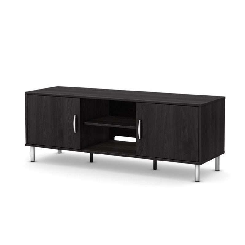 | South Shore - TV Stands - 10001 - An affordable choice: The combination of closed and open storage spaces in these modern-design TV stands from the Renta collection makes them highly functional pieces. Their simple lines and metallic touches make for a contemporary style that goes well in any type of décor. The cutout backs make cable management simple and efficient. Available in 2 configurations – for whatever your living room needs. Functionality and simplicity in a TV stand from the Renta collection that’ll give you a lot more storage space in your living room. The versatile and practical design make this piece a pleasure to use, and it’ll blend in easily with your style. The metallic touches will give your space a hint of elegant, contemporary style. Finish: Gray Oak2 Doors3 Adjustable ShelvesMetal legs in a Silver finish, for a contemporary styleElegant metal handle in a Silver finishCan support a total weight of up to 100 lbCutout back for simple, efficient cable managementClean with a soft dry clothSafety is an integrated part of our values: this product meets or exceeds all North American safety standardsSpecifications:Overall Product Dimensions: 21.5"" H x 57.5"" W x 18.5"" DOverall Product Weight: 76 lbsMaximum Supported TV Size: 60""Adjustable Shelf Weight Capacity: 15 lbs5-year quality guarantee