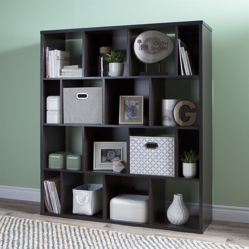 | South Shore Reveal 16 Cubby Wood Bookcase in Chocolate |
