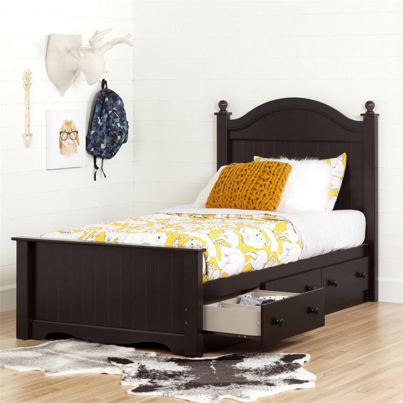| South Shore - Beds - 10507 - The details in this collection give it a classic look that we love⦠a look that will make your little treasure's room warm and cozy. Adapt the decor to your child's tastes for a look he or she will love! Finish: Chocolate; Material: Laminated particleboard; Headboard and footboard included; Economic choice: no box spring required; The drawers can go on either side of the bed (left or right); Metal drawer slides; Wooden knobs. Total weight capacity: 250 lb; Packaging tested and certified to reduce the risk of damage during shipment; Made in North America with non-toxic laminated particleboard; Mattress and accessories not included. Clean with a dry cloth; Ships in 2 boxes, make sure to have a friend with you. Meets or exceeds all North American safety standards; Requires complete assembly by 2 adults (tools not included). Specifications:Overall Product Dimensions: 47.5'' H x 80.63'' W x 42.63'' D; Product Weight: 187.0 lbs; 5-year quality guarantee. Any questions? Contact the manufacturer, available 7/7 by phone, email or chat.