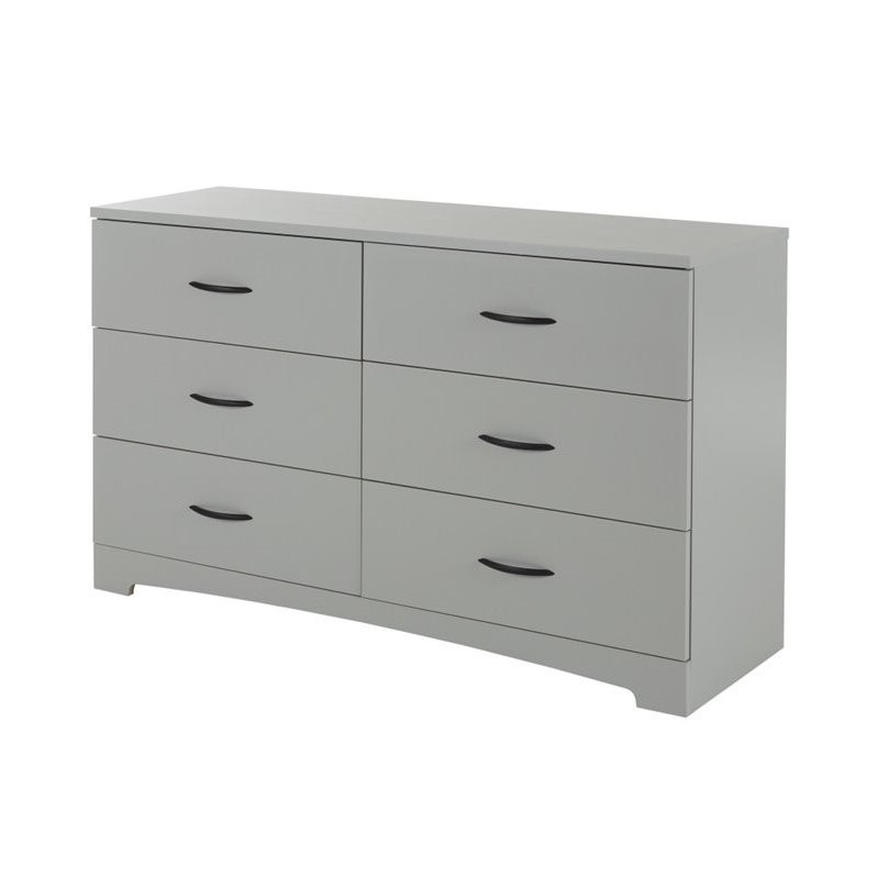 | South Shore Step One 6 Drawer Double Dresser in Soft Gray |