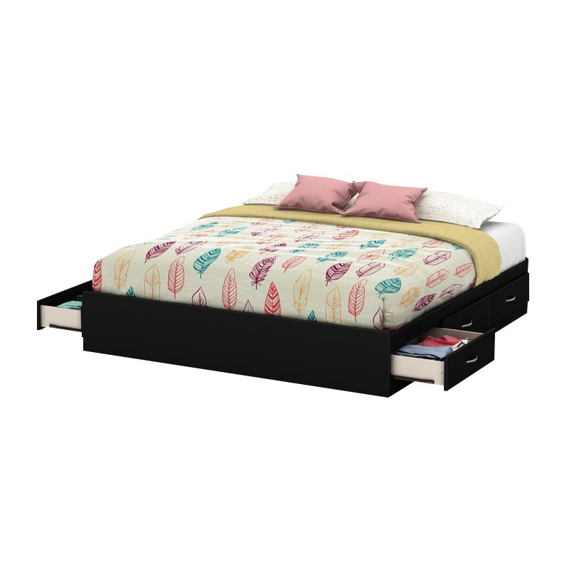 | South Shore - Beds - 3107249 - Thanks to its neutral yet trendy finish and clean lines, this bed with storage goes well with all of today's decors and styles. Furthermore, it features practical additional storage in the bedroom with its 6 drawers. The furniture lets you picture a simple décor that's brought to life through the use of bright colors. Let your imagination go wild, and see where it takes you!Finish: Pure Black; Material: Laminated particleboard; Economic choice: does not require a box spring; Metal handle in a matte silver finish; Features 6 practical drawers (3 on each side); Metal drawer slides; Can support a total weight of up to 500 lb.; Packaging tested and certified to reduce the risk of damage during shipment; Made in North America with non-toxic laminated particleboard; Mattress and accessories not included. Clean with a soft dry cloth; Ships in 3 boxes, make sure to have a friend with you; This product may take some time to assemble (tools not included, requires assembly by 2 adults) – make sure to bring a snack! ; 5-year quality guarantee. Any questions? Contact the manufacturer, available 7/7 by phone, email or chat. Specifications:Overall Product Dimensions: 14.5'' H x 82'' W x 78'' D; Product Weight: 240.0 lbs.