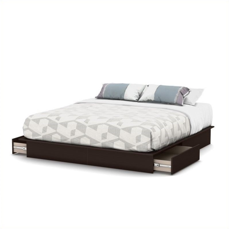 | South Shore Step One King Platform Bed with Drawers in Chocolate |