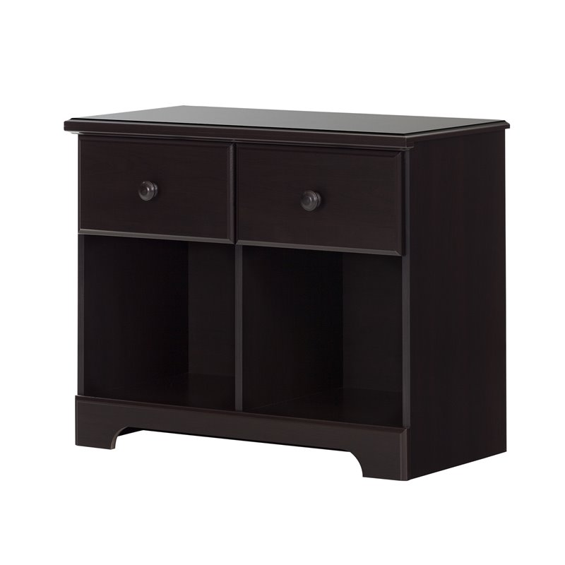 | South Shore - Kids Night Stands - 10207 - The country-style Summer Breeze bedroom collection is the perfect choice for a child, teenager or even young adult’s room. It features plentiful storage space, with the drawers and open compartments in the nightstand and headboard. The grooves and moldings in the mirror and headboard lend refinement and elegance to the collection. There are times when you just can’t keep them apart… and other times when it seems like they can’t be together! But your two favorite little monsters may have to share a room. Put this charming night stand between the two beds, and you’ll have plenty of space so they’ll get along great. And it blends perfectly with the rest of the Summer Breeze collection. Finish: ChocolateMaterial: Non-toxic Laminated particleboardWooden knobsFeatures 2 open easy-access storage spacesFeatures 2 practical drawersMetal drawer slidesOptimized cord managementPackaging tested and certified to reduce the risk of damage during shipmentAccessories not included. Clean with a soft dry clothRequires complete assembly by 2 adults (tools not included)5-year quality guarantee. Any questions? Contact the manufacturer, available 7/7 by phone, email or chat. Specifications:Overall Product Dimensions: 25.5'' H x 31.5'' W x 14.6'' DProduct Weight: 47 lbs