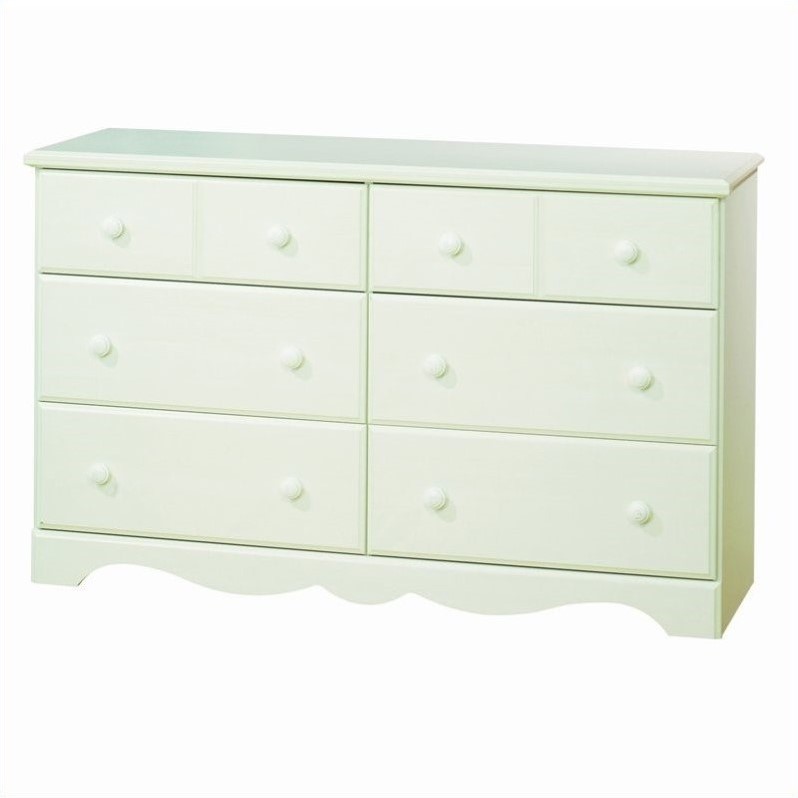| South Shore - Dressers - 3210027PKG - South Shore Summer Breeze 6 Drawer Dresser in White Wash The Summer Breeze collection offers you this dresser with its white wash finish. It has a timeless country look and makes a statement in any decor. The country lines are accentuated by the shape of drawers, top moulding and kick plate. The line carved on the top drawers creates the illusion that there are four drawers on top. It features 6 practical drawers and the matching wood knobs are adding character and value to the furniture. The white wash finish offers a romantic look to this collection. Also available in blueberry wash and chocolate finishes. It is made of recycled CARB compliant particle pannels.The glides are made of polymer and include dampers and catches, creating a secure environment for little ones. It has to be assembled by two adults.Tools are not included. 5 year warranty. Made in Canada. Dresser features solid particleboard construction with finished laminate ; Dresser has a white wash finish; Constructed of CARB compliant materials; Dresser features six spacious drawers with plastic drawer glides ; Perfect for girls . Specifications: Overall dimensions: 52""W x 32""H x 16""D; Interior drawer dimensions: 22.5 W x 13.75 D ; Carton dimensions: 56"" H x 19.5"" W x 7"" D; Weight: 108 lbs.. South Shore Summer Breeze Collection Dresser Mirror in White WashThe Summer Breeze Mirror is a fresh and vibrant addition to a room with a casual decor, most prominently featuring a recessed panel arched crown with decorative molding, and beveled edges along the sides of the frame. The mirror's white wash finish completes the appeal of the mirror and it's designation as a ""Summer Breeze"". Mirror frame features solid particleboard wood construction with a laminate finish ; Mirror has a white wash finish ; Constructed of CARB compliant materials; Modern arch dresser mirror ; Manufacturer's 5-year limited warranty ; Perfect for girls . Specifications: Overall dimensions: