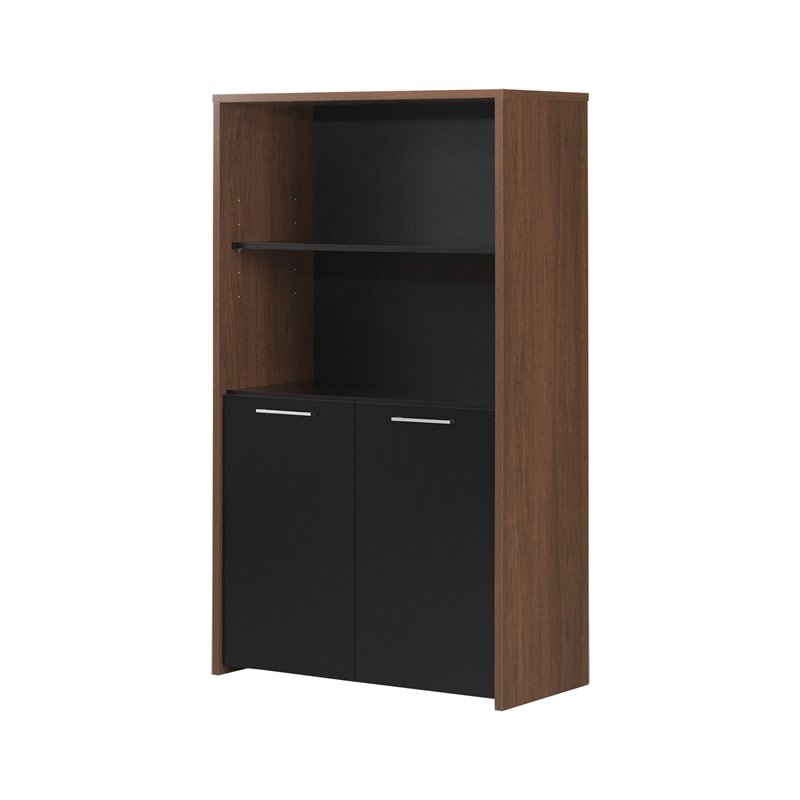 | South Shore - Bookcases - 10392 - We designed the Tasko collection to meet the needs of a professional working at home. Its functional structure means you can set it up in the room any way you like. Create your perfect configuration with the different pieces from the collection. The Tasko bookcase is a multifunction storage solution that’ll help free up your work surface. Its main purpose is storage of documents, books, and the various little things that accumulate in your space. Its look works well with the other pieces in this collection.Finish: Brown Walnut and Pure BlackMaterial: Non-toxic Laminated particleboard2 open storage spaces, separated by 1 adjustable shelf (can support up to 25 lb)Behind the door: 2 storage spaces, separated by 1 adjustable shelf (can support up to 25 lb)Metal handlesPackaging tested and certified to reduce the risk of damage during shipmentAccessories not included. Clean with a soft dry clothShips in a heavy box, make sure to have a friend with youRequires complete assembly by 2 adults (tools not included)5-year quality guarantee. Any questions? Contact the manufacturer, available 7/7 by phone, email or chat. Specifications:Overall Product Dimensions: 60'' H x 35.43'' W x 17'' DProduct Weight: 111 lbs