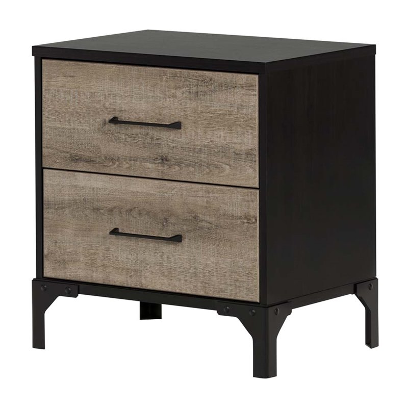 | South Shore Valet 2 Drawer Nightstand in Weathered Oak and Ebony |