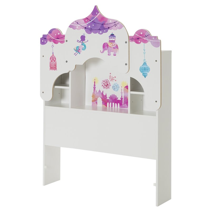 | South Shore - Headboards - 10099 - The transitional-style Vito collection is a perfect blend of minimalist style and functionality. It features abundant open and closed storage space and stands out for its simple but refined lines and cute round handles that bring a touch of softness. This tasteful bedroom set will surround you in a soothing atmosphere after a long day. Turn every bedtime into an adventure from a thousand and one nights! This original headboard helps create a setting that sparks the imagination. Ottograff decals bring the theme to life – a great way to inspire fantastic dreams! And you can take them off without damaging the furniture. When your kid is older, you can remove the whole themed panel so what’s left is a neutral headboard with a built-in bookcase.Finish: Pure WhiteMaterial: Non-toxic Laminated particleboardCan be combined with the bed from our Vito collection (3150212)Themed panel comes off: a handy feature for when your kid is olderFour easy to access storage spacesIncludes decals for you to apply. The drawing is printed on white self-sticking vinylDecals come off easily – no damage to furniturePackaging tested and certified to reduce the risk of damage during shipmentDecals included, other accessories not included. Clean with a soft dry clothFurniture requires complete assembly by 2 adults (tools not included), decals are easy to apply by one person5-year quality guarantee. Any questions? Contact the manufacturer, available 7/7 by phone, email or chat. Specifications:Overall Product Dimensions: 56.1'' H x 41'' W x 8.25'' DProduct Weight: 49 lbs